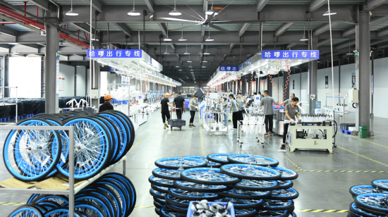 (哈啰单车佛山凤凰OEM生产基地产线)
