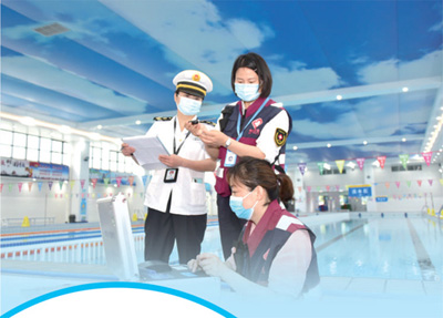 安徽省阜南县卫生健康执法人员联合疾控中心人员对辖区一游泳场所开展监督检测。吕乃明摄(人民视觉)