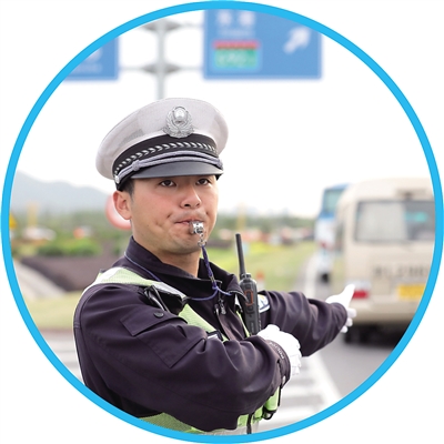 浙江省舟山市公安局交通警察支队普陀大队交警正在疏导交通。邹训永摄(人民视觉)