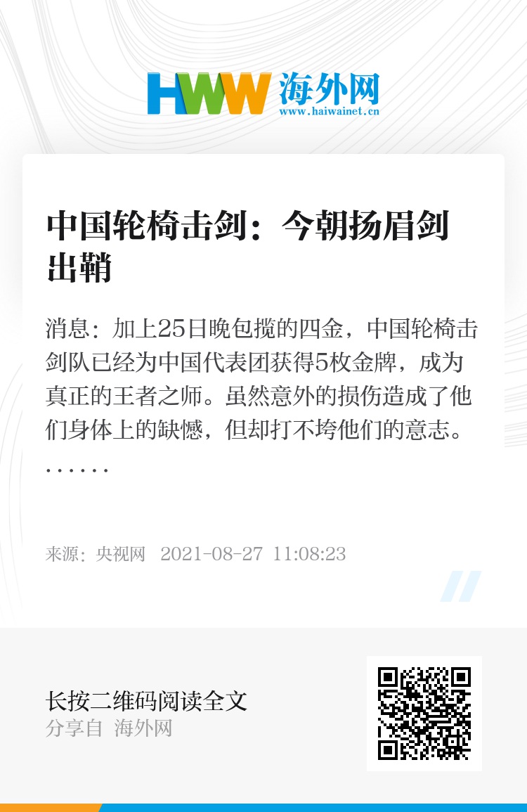 央视网消息:加上25日晚包揽的四金,中国轮椅击剑队已经为中国代表团获得5枚金牌,成为真正的王者之师。虽然意外的损伤造成了他们身体上的缺憾,但却打不垮他们的意志。他们用热爱和拼搏点燃生命之火,终于在东京残奥会的舞台上扬眉剑出鞘。