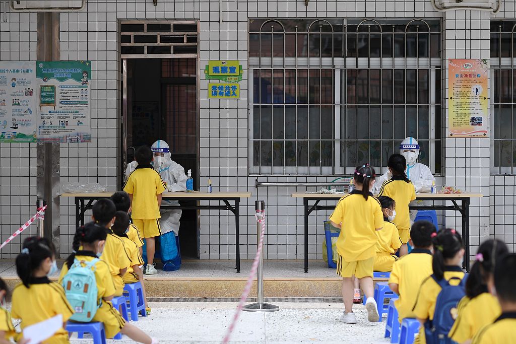 2021年8月28、29日,为进一步做好中小学、幼儿园秋季学期开学新冠肺炎疫情防控工作,广州多区开展全体师生员工核酸检测。图源:人民视觉
