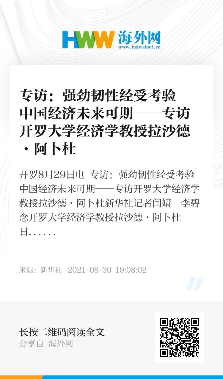 新华社开罗8月29日电 专访:强劲韧性经受考验 中国经济未来可期——专访开罗大学经济学教授拉沙德·阿卜杜