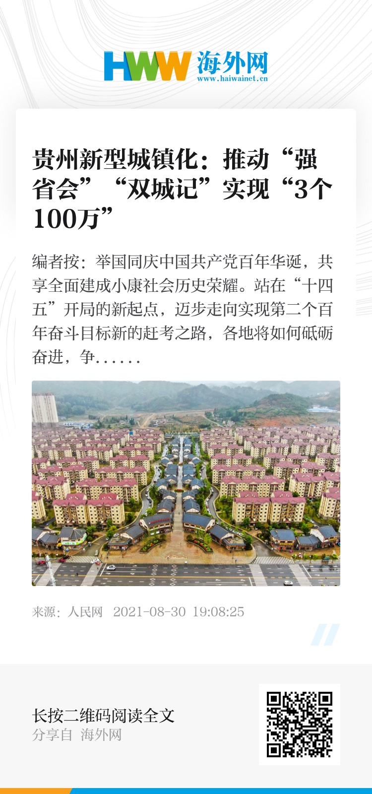 新征程,新蓝图。站在“十四五”开局、全面建设社会主义现代化新征程的新起点上,贵州正聚力走出一条特色新型城镇化发展新路,为开创百姓富、生态美的多彩贵州新未来提供强劲动力。