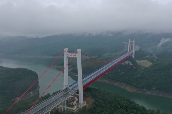 俯瞰遵余高速公路飞龙湖乌江大桥。贺春雨摄