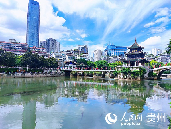 水清岸绿的南明河畔成为贵阳市民休闲好去处。人民网 唐杰摄