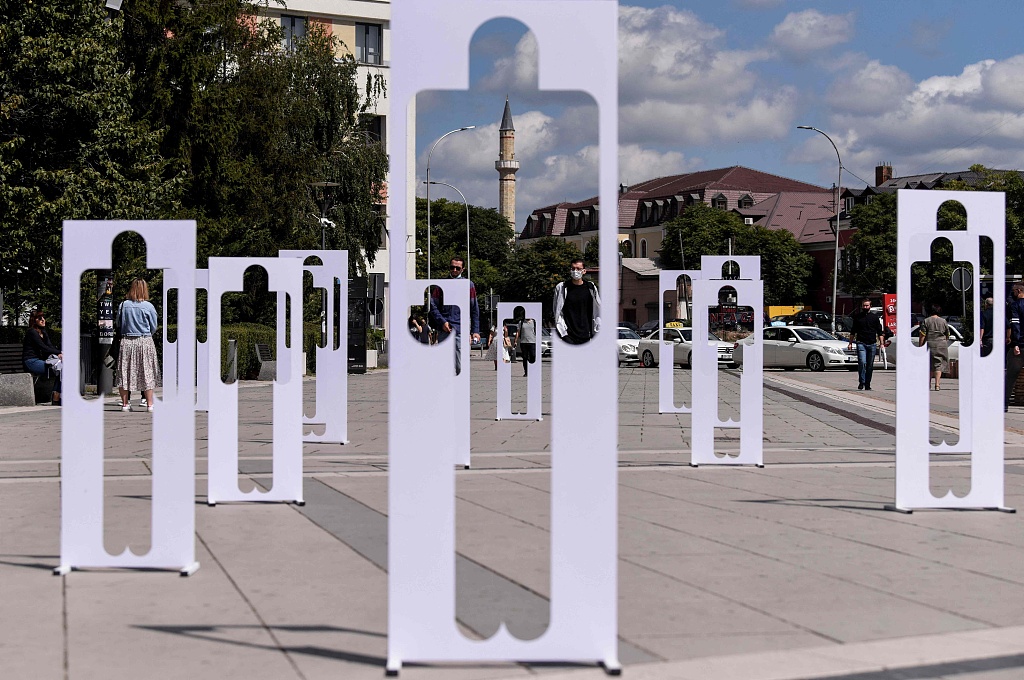 科索沃摆放人形纸板 纪念战争中失踪民众