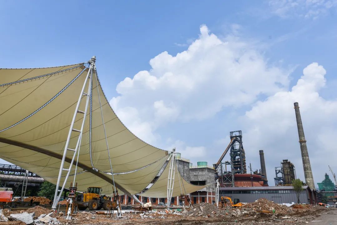 在厂东门广场,脱硫车间曾是首钢老厂钢铁主流程铁水脱硫预处理设施,它经历了从生产时期的“烟熏妆”到如今的“清新妆”的华丽转变,将在服贸会期间首次对外开放,一至三层将设置为服贸会媒体中心。