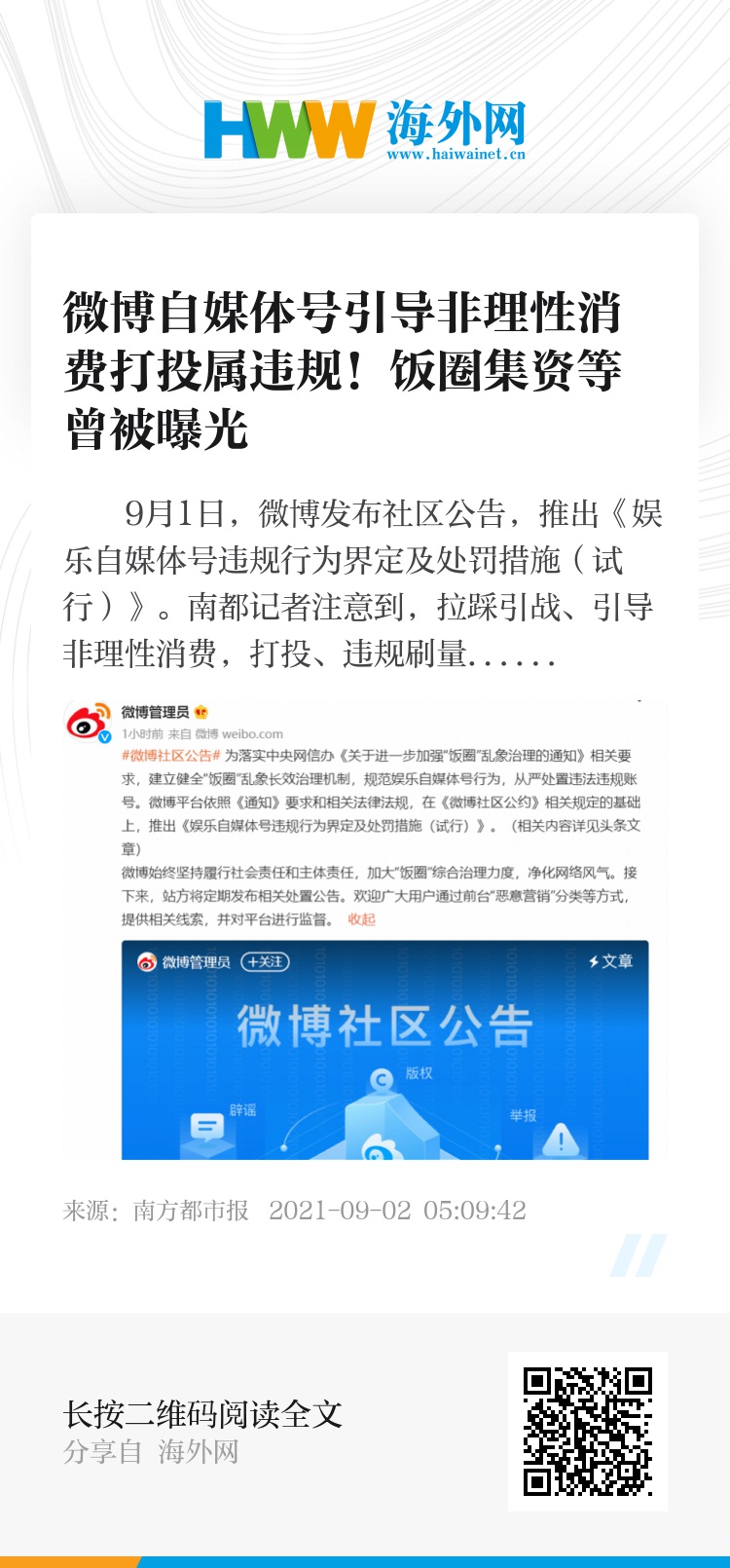 9月1日,微博发布社区公告,推出《娱乐自媒体号违规行为界定及处罚措施(试行)》。南都记者注意到,拉踩引战、引导非理性消费,打投、违规刷量控评等行为均属违规。同时,同一机构下账号多次违规,将根据情节严重度,对机构整体进行处罚。