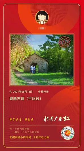 如果大家想一睹这条有千年历史的古道容颜,感受历史的沧桑变幻,不妨登录“打卡广东红”小程序,在打卡类型选择的“古驿道”,即可马上“云游”。