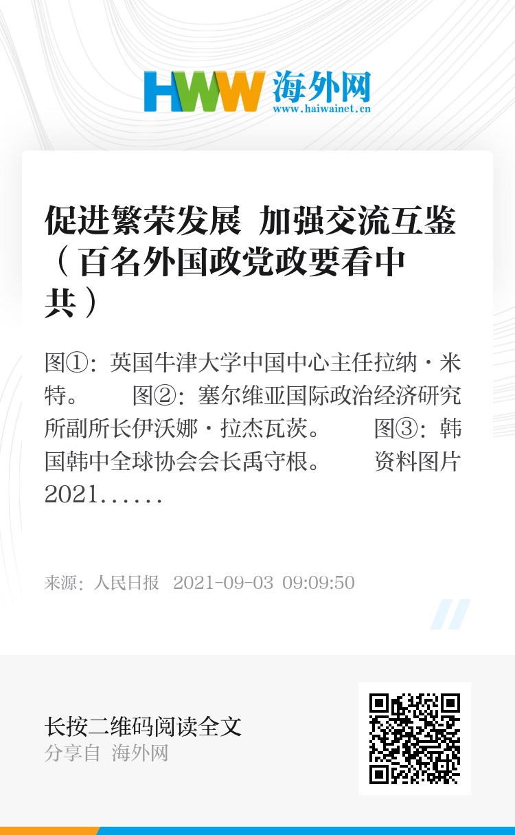 韩国韩中全球协会会长禹守根表示,“中国共产党在领导中国发展的过程中积累了丰富的治国理政经验,并建立完善了解决问题的机制体制,为其他国家处理国内问题、参与全球治理提供了有益参考”。