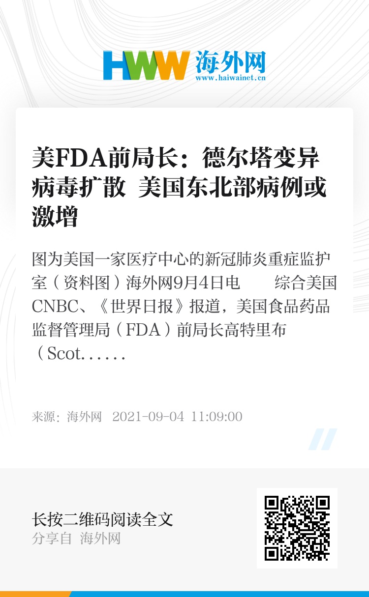 海外网9月4日电 综合美国CNBC、《世界日报》报道,美国食品药品监督管理局(FDA)前局长高特里布(Scott Gottlieb)表示,随着德尔塔变异病毒扩散,美国东北部的新冠病例将在今年冬天激增。