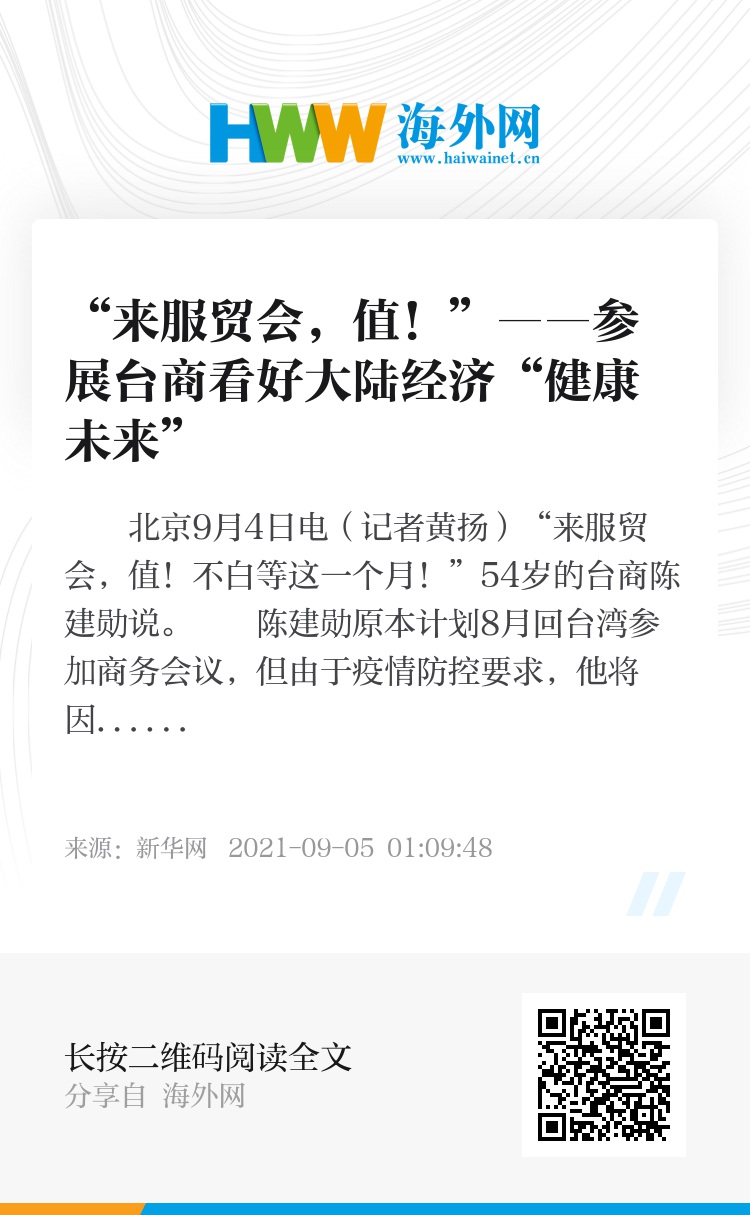 新华社北京9月4日电(记者黄扬)“来服贸会,值!不白等这一个月!”54岁的台商陈建勋说。