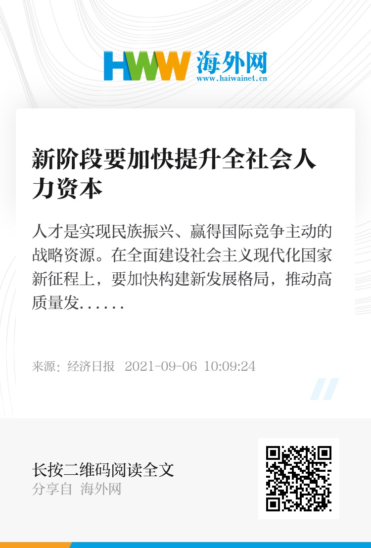 人才是实现民族振兴、赢得国际竞争主动的战略资源。在全面建设社会主义现代化国家新征程上,要加快构建新发展格局,推动高质量发展,推动共同富裕取得更为明显的实质性进展,必须深入贯彻以人民为中心的发展思想,把提升全社会人力资本摆在更加重要的位置。