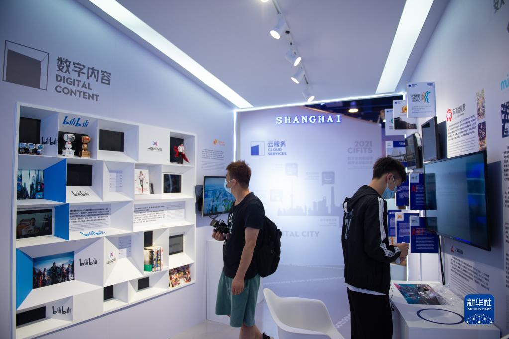 9月4日,观众在服贸会国家会议中心展区参观上海展位数字内容区域。