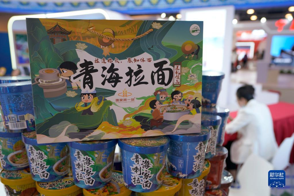 9月5日拍摄的服贸会国家会议中心展区青海展位展示的特色食品。