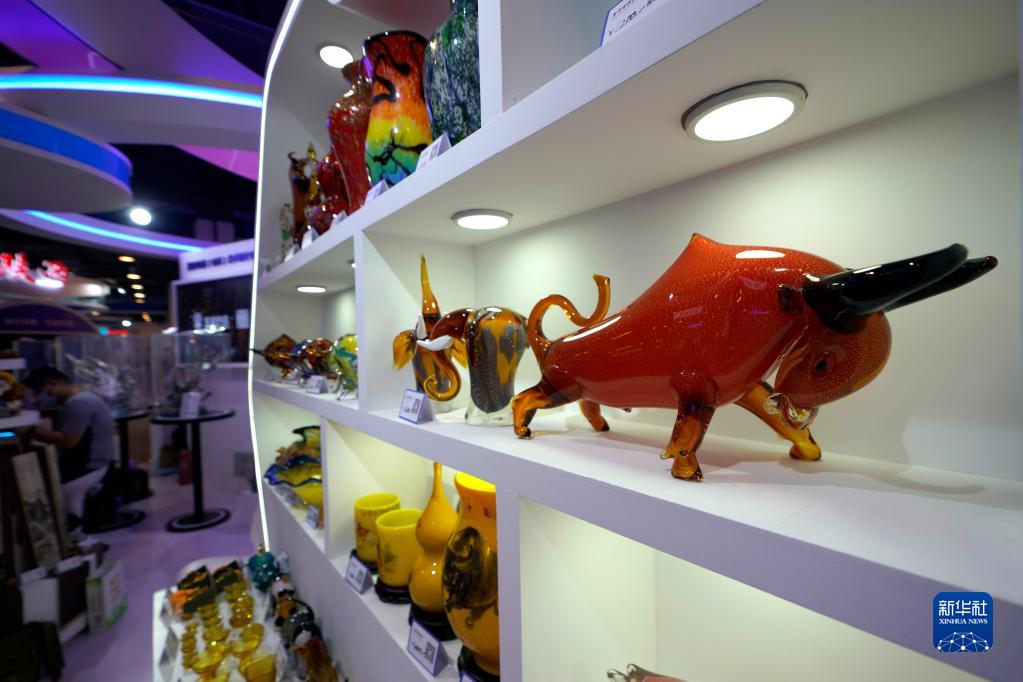 9月5日在服贸会国家会议中心展区山东展位拍摄的工艺品。