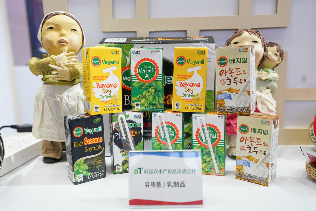 这是9月5日在服贸会国家会议中心国别展区韩国展台拍摄的乳制品。