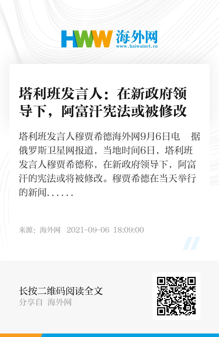 海外网9月6日电 据俄罗斯卫星网报道,当地时间6日,塔利班发言人穆贾希德称,在新政府领导下,阿富汗的宪法或将被修改。