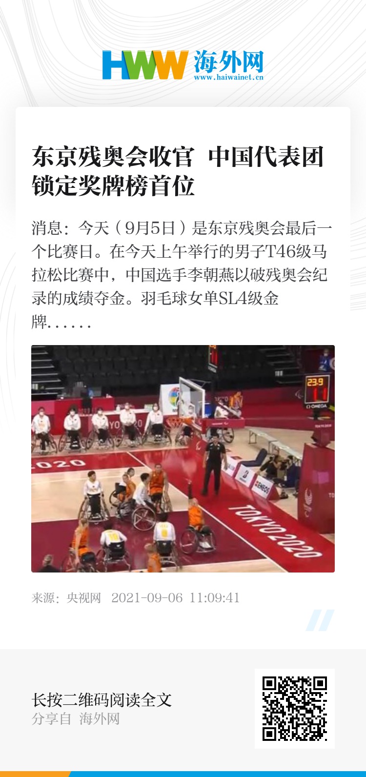 央视网消息:今天(9月5日)是东京残奥会最后一个比赛日。在今天上午举行的男子T46级马拉松比赛中,中国选手李朝燕以破残奥会纪录的成绩夺金。羽毛球女单SL4级金牌赛中,中国选手程和芳击败印尼选手拿下金牌。目前,中国代表团以95金60银51铜、总计206枚奖牌的成绩继续领跑金牌榜、奖牌榜。在昨天的比赛中,中国队在田径、羽毛球,轮椅篮球等项目都有上佳表现,斩获多枚奖牌。