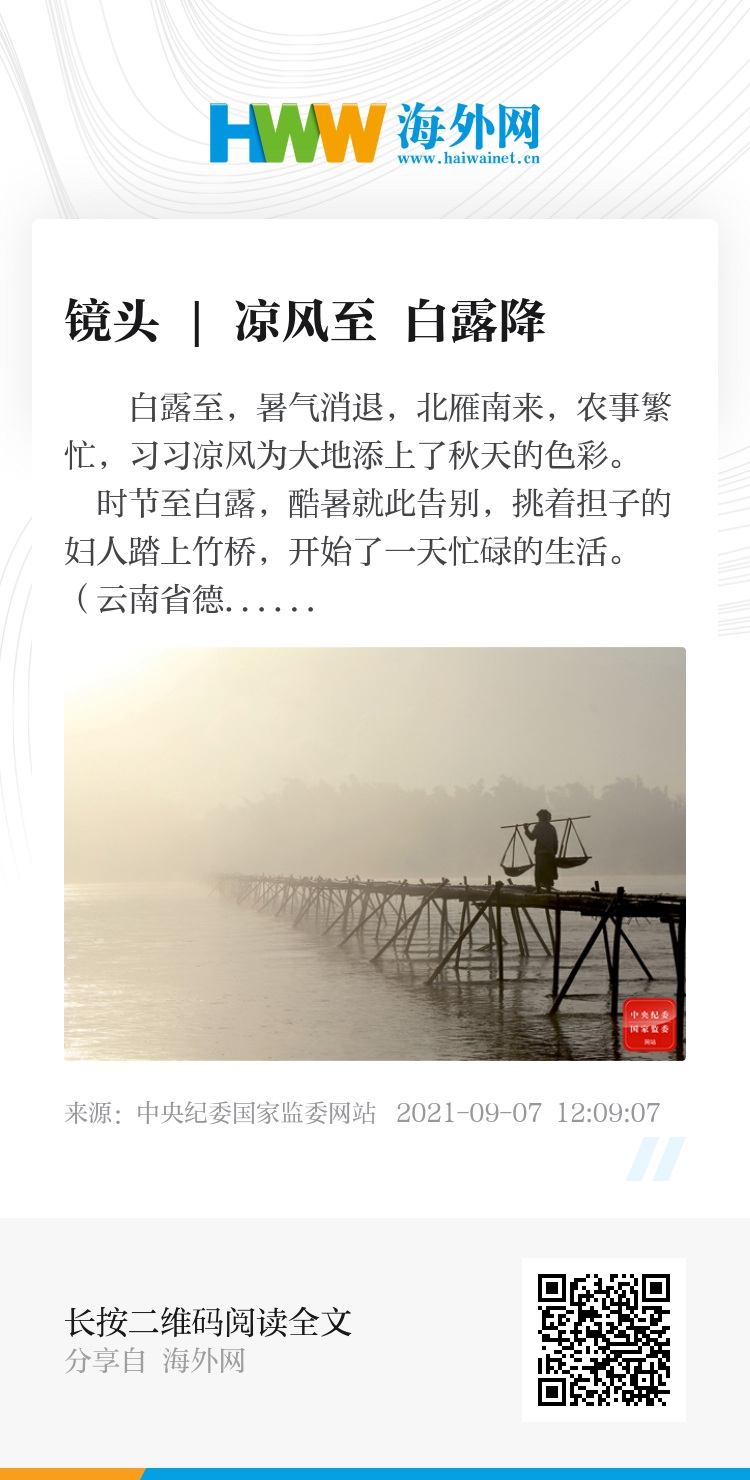 白露至,暑气消退,北雁南来,农事繁忙,习习凉风为大地添上了秋天的色彩。