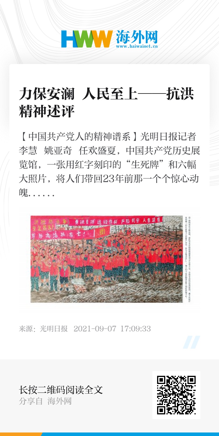 这种力量,穿越时空,筑起了一道洪水冲不垮的坚强堤坝,激励着人们一次次投入抗洪战斗。