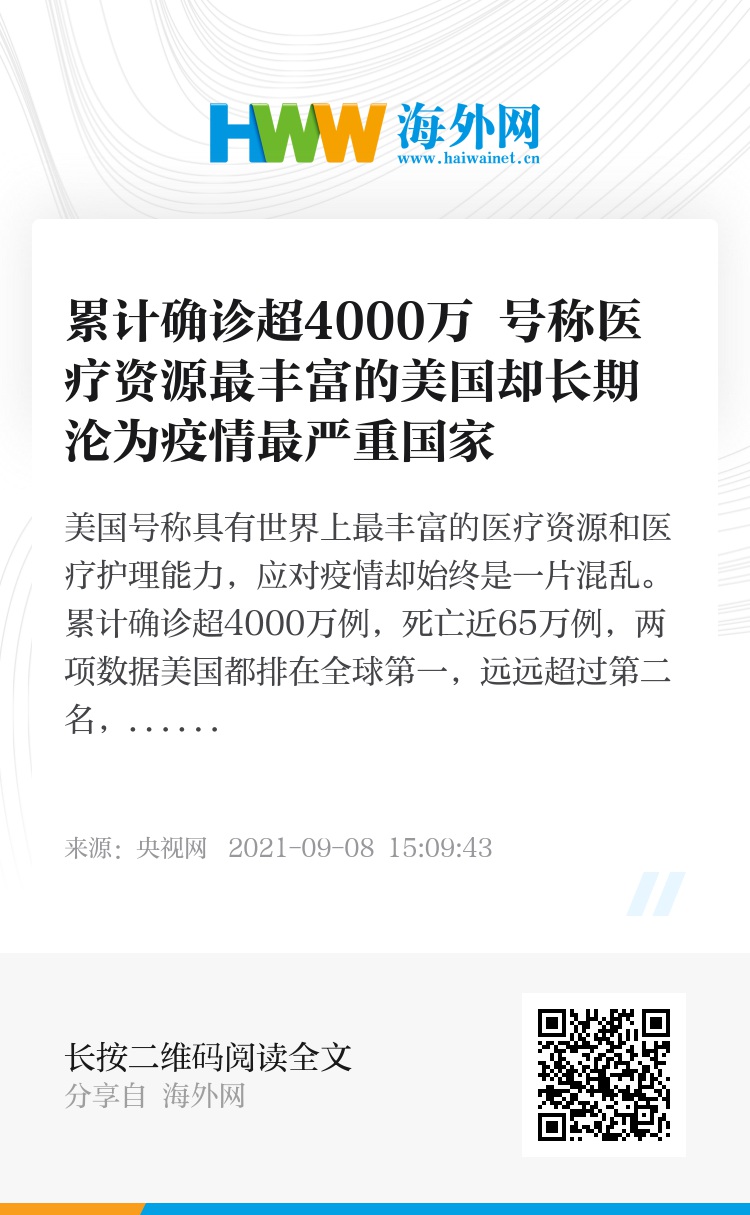 美国号称具有世界上最丰富的医疗资源和医疗护理能力,应对疫情却始终是一片混乱。累计确诊超4000万例,死亡近65万例,两项数据美国都排在全球第一,远远超过第二名,这一尴尬局面已经持续了一年半左右的时间。