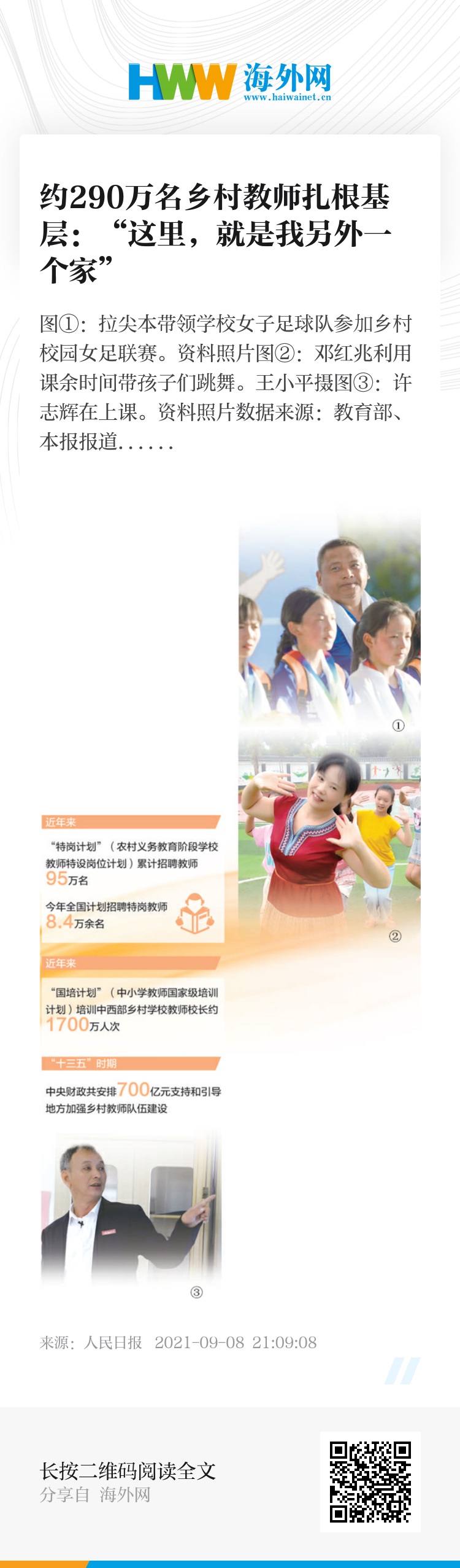 近年来,全国约290万名中小学(含幼儿园、特殊教育学校)专任教师,选择扎根基层,为乡村的孩子们带来了希望。教育部教师工作司司长任友群介绍,此外通过“特岗计划”、公开招聘、定向培养、“县管校聘”、退休支教等多元培养补充交流机制,一支“下得去、留得住、教得好”的乡村教师队伍正在形成。