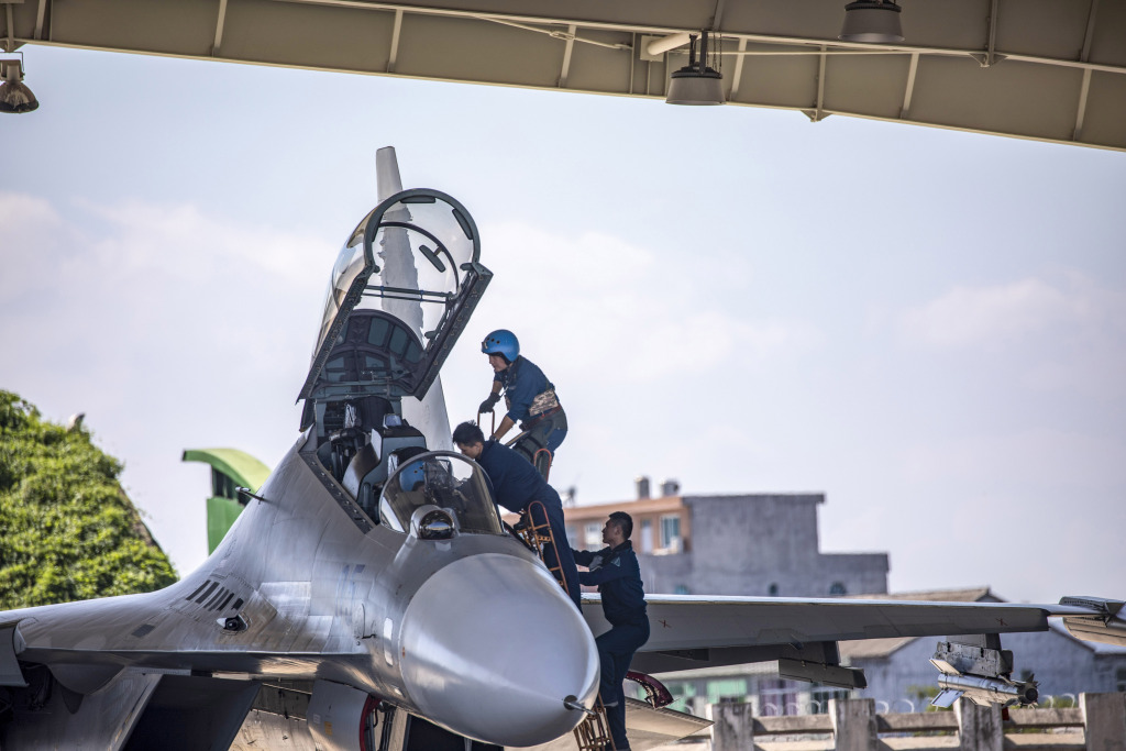 2021年9月8日,浙江,飞行员登上战机。图片来源:田健敏/澎湃影像