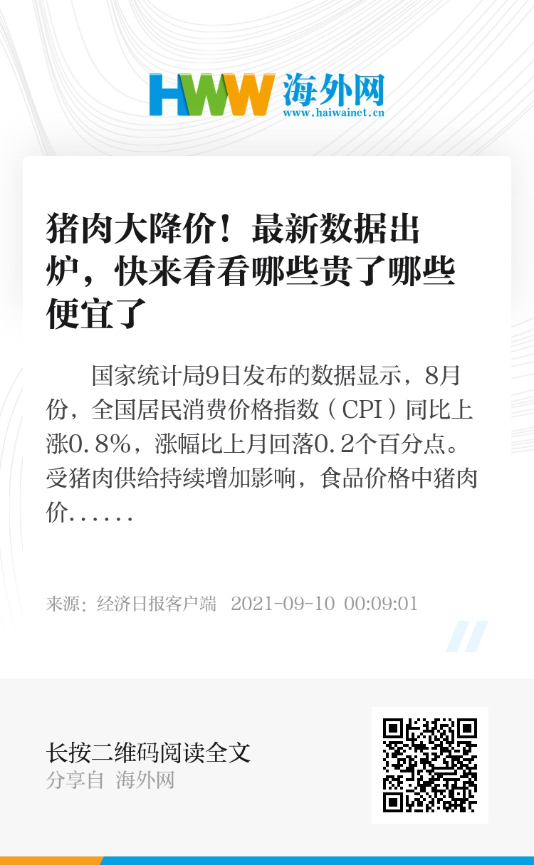 据测算,在8月份9.5%的同比涨幅中,去年价格变动的翘尾影响约为1.8个百分点,比上月回落0.3个百分点;新涨价影响约为7.7个百分点,扩大0.8个百分点。