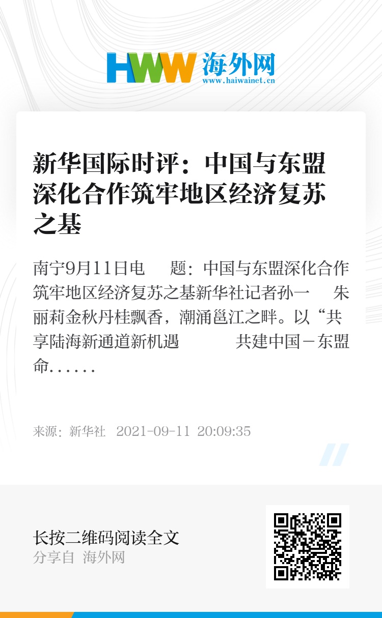 新华社南宁9月11日电 题:中国与东盟深化合作筑牢地区经济复苏之基