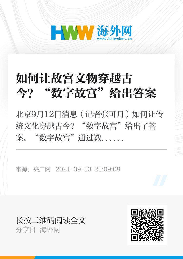 央广网北京9月12日消息(记者张可月)如何让传统文化穿越古今?“数字故宫”给出了答案。