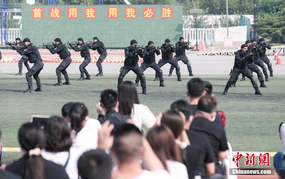 9月11日,北京市公安局在反恐怖和特警总队举办第二批队伍教育整顿主题开放日活动,进行特警车辆、装备、单警技能、警犬技术、摩托车驾驶技术成果展示。北京市人大代表、政协委员和市民代表等300余人走进警营参观体验。中新社记者 贾天勇 摄