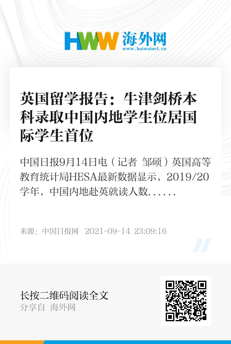 中国内地学生牛剑本科录取数量位居国际学生第一