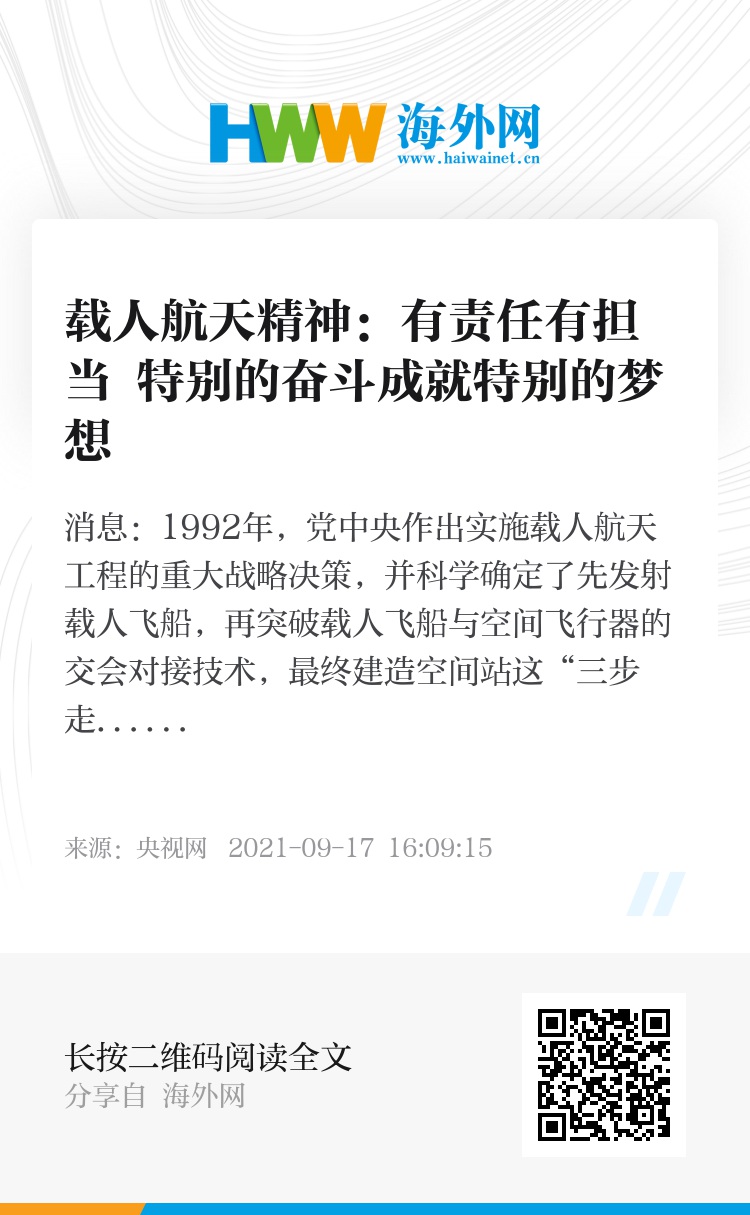 中国工程院院士 神舟飞船首任总设计师 戚发轫:载人航天人命关天,最重要的问题是我们中国的航天员不能牺牲,这对我们这个队伍就是最大的挑战。那么就是要把天上能遇到的问题,能遇到的环境,地面都能够考虑到,把问题暴露了才能做到这一点。