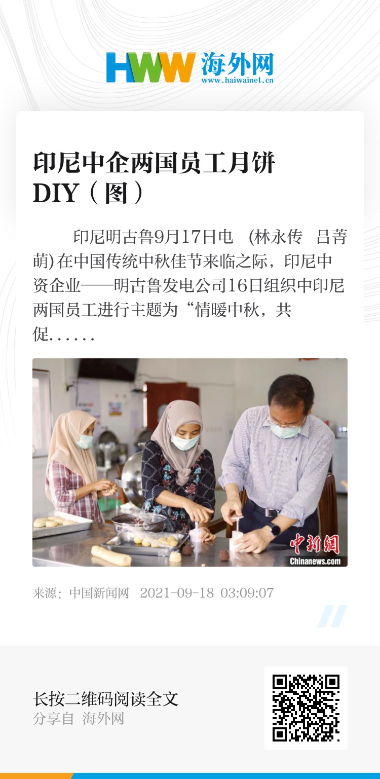 中新网印尼明古鲁9月17日电 (林永传 吕菁萌)在中国传统中秋佳节来临之际,印尼中资企业——明古鲁发电公司16日组织中印尼两国员工进行主题为“情暖中秋,共促友谊”的月饼DIY活动。