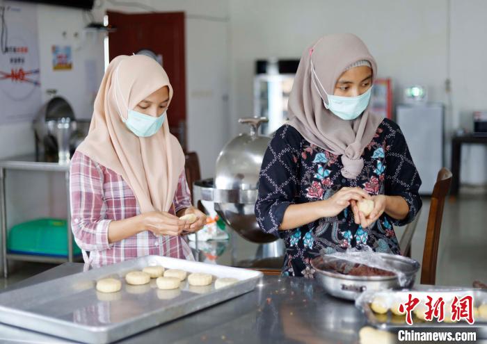 传统面皮和糯米皮,蛋黄、奶黄、豆沙、莲蓉,榴莲等馅料丰富多样、应有尽有。中印尼两国员工兴致满满,“沉浸式”参与制作全过程,从打平、搓圆、压模到定型、烘焙,人人都化身月饼师傅,遇到困难时大家就掏出手机,搜视频、搜教程、学步骤,再动手实践。