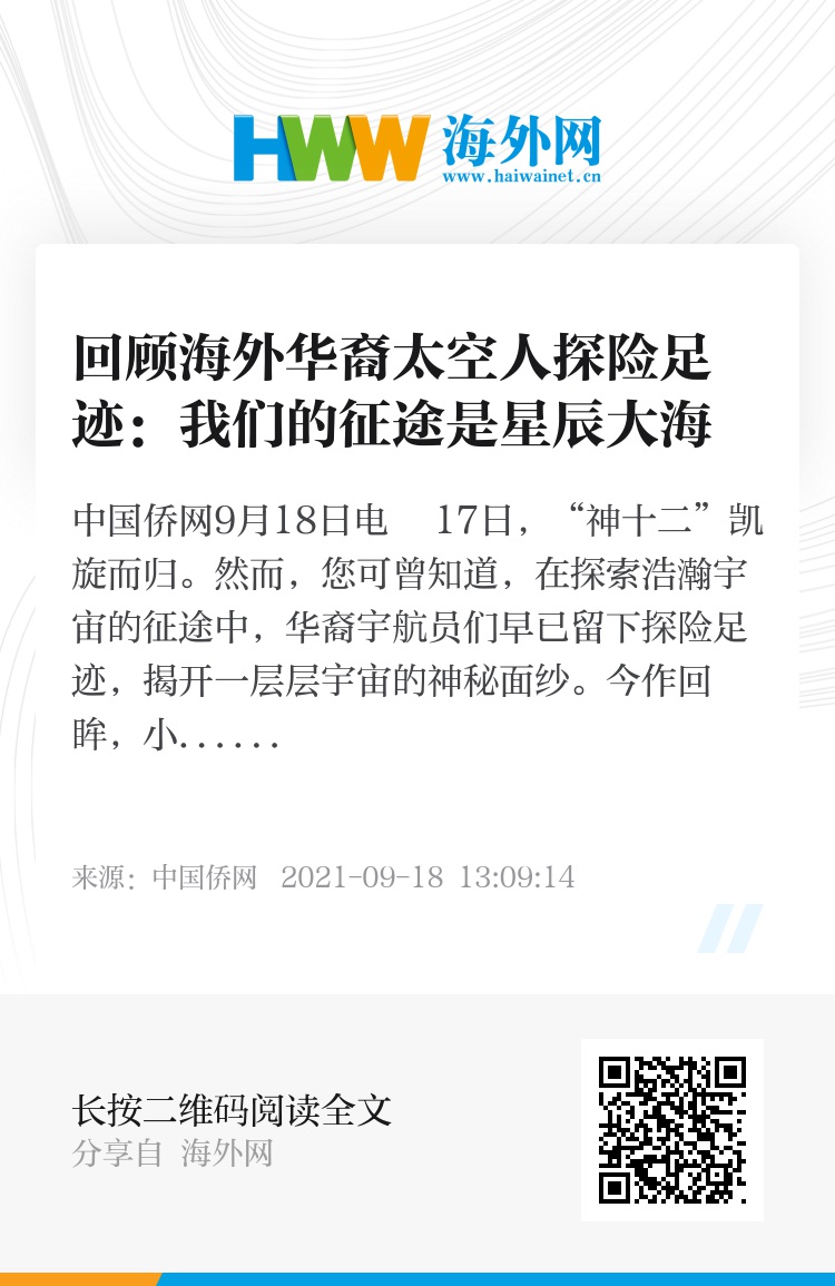 然而,您可曾知道,在探索浩瀚宇宙的征途中,华裔宇航员们早已留下探险足迹,揭开一层层宇宙的神秘面纱。今作回眸,小侨将与您共享他们的太空故事。