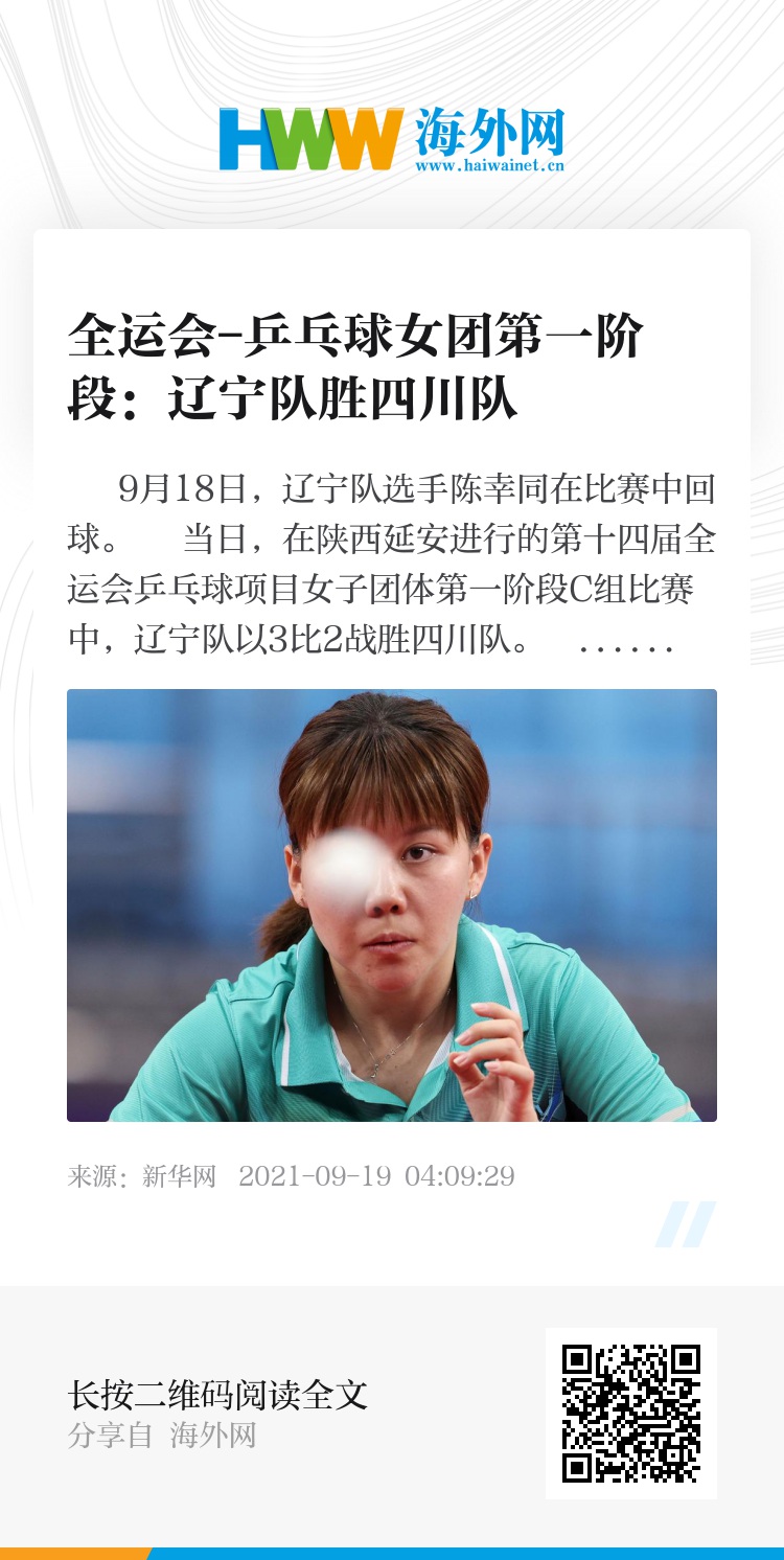 当日,在陕西延安进行的第十四届全运会乒乓球项目女子团体第一阶段C组比赛中,辽宁队以3比2战胜四川队。