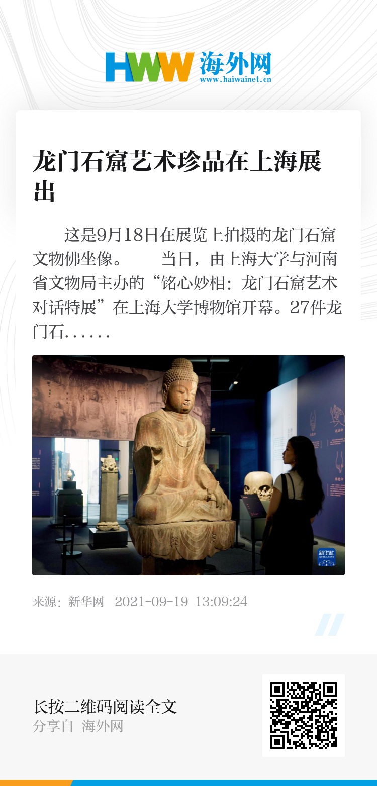 当日,由上海大学与河南省文物局主办的“铭心妙相:龙门石窟艺术对话特展”在上海大学博物馆开幕。27件龙门石窟研究院特藏文物亮相特展,同时展出了16件当代艺术作品,上演一场跨越时空的奇妙对话。