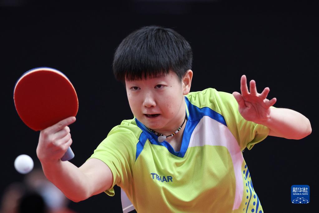 9月19日,河北队选手孙颖莎在比赛中回球。