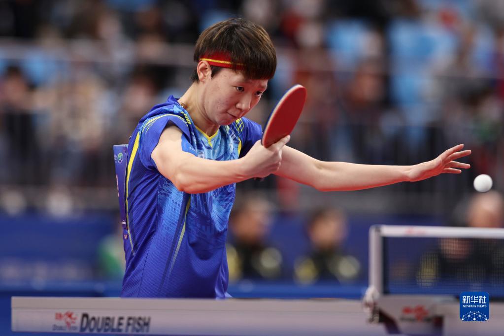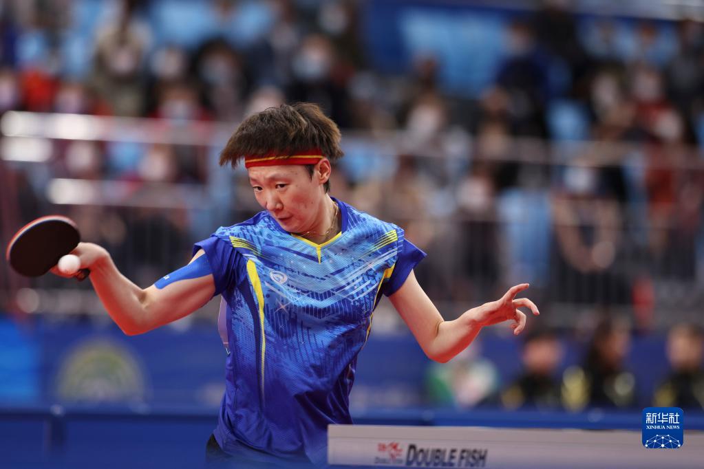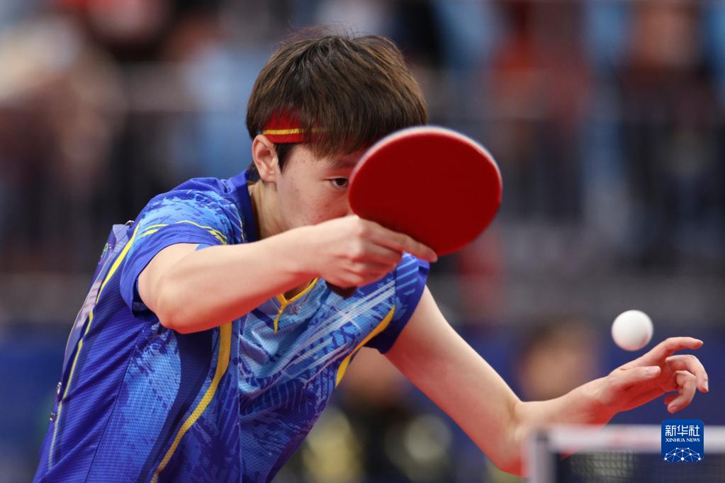 9月19日,黑龙江队选手王曼昱在比赛中回球。