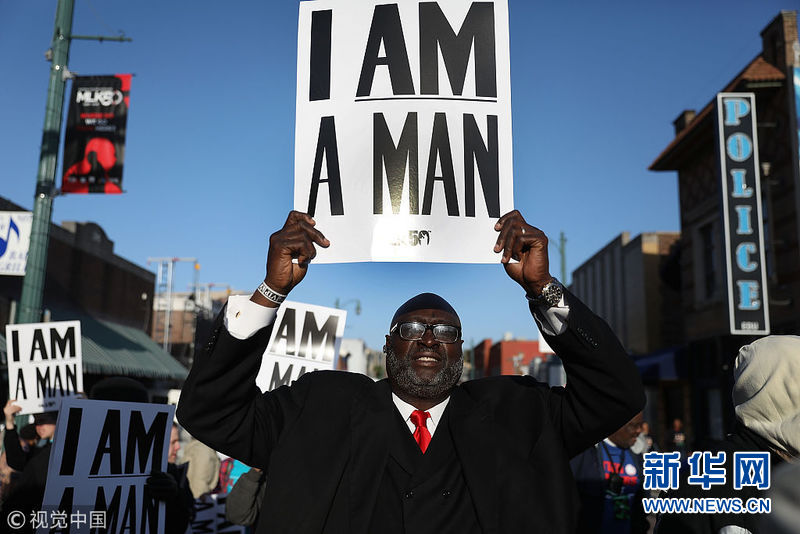 2018年4月4日,美国田纳西州孟菲斯,民众参加游行,纪念马丁·路德·金遇刺50周年。(图片来源:视觉中国)
