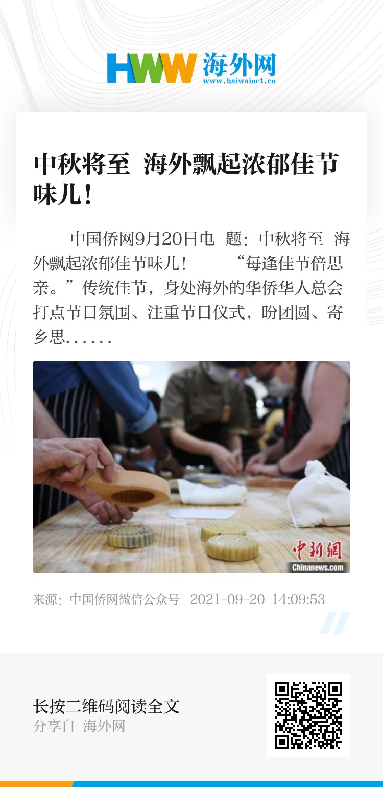 中国侨网9月20日电 题:中秋将至 海外飘起浓郁佳节味儿!