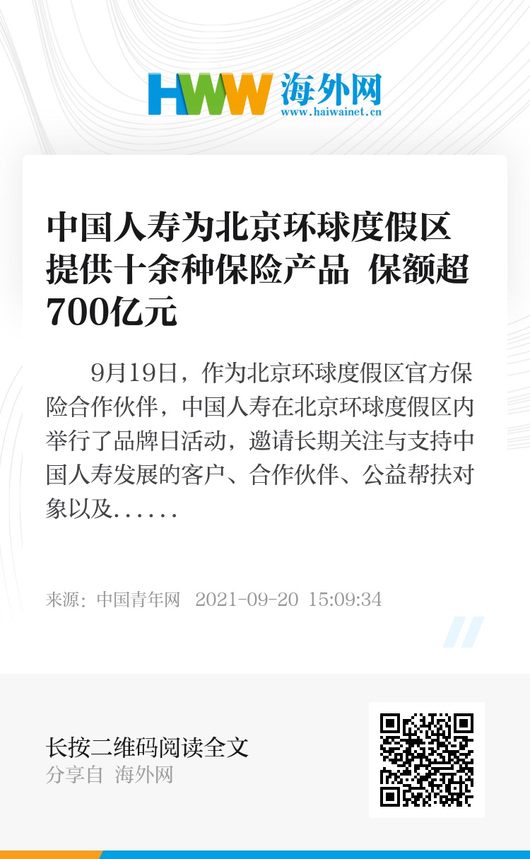 截至目前,中国人寿作为北京环球度假区官方保险合作伙伴,累计为建设期、运营期的北京环球度假区提供保险保额超过700亿元,包括建筑安装工程一切险、单项工程职业责任险、财产一切险、机器损坏险、营业中断险等十余种保险产品。