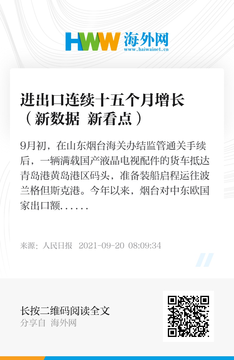 “前8月,我国外贸之所以能取得好成绩,得益于我国疫情防控积极有效,经济持续稳定恢复、稳中向好,为外贸进出口平稳增长提供了有力支撑。”海关总署相关负责人表示,各地各部门积极采取措施应对国际市场各种不确定不稳定因素,向改革要动力,向创新要活力,促进外贸稳中提质。