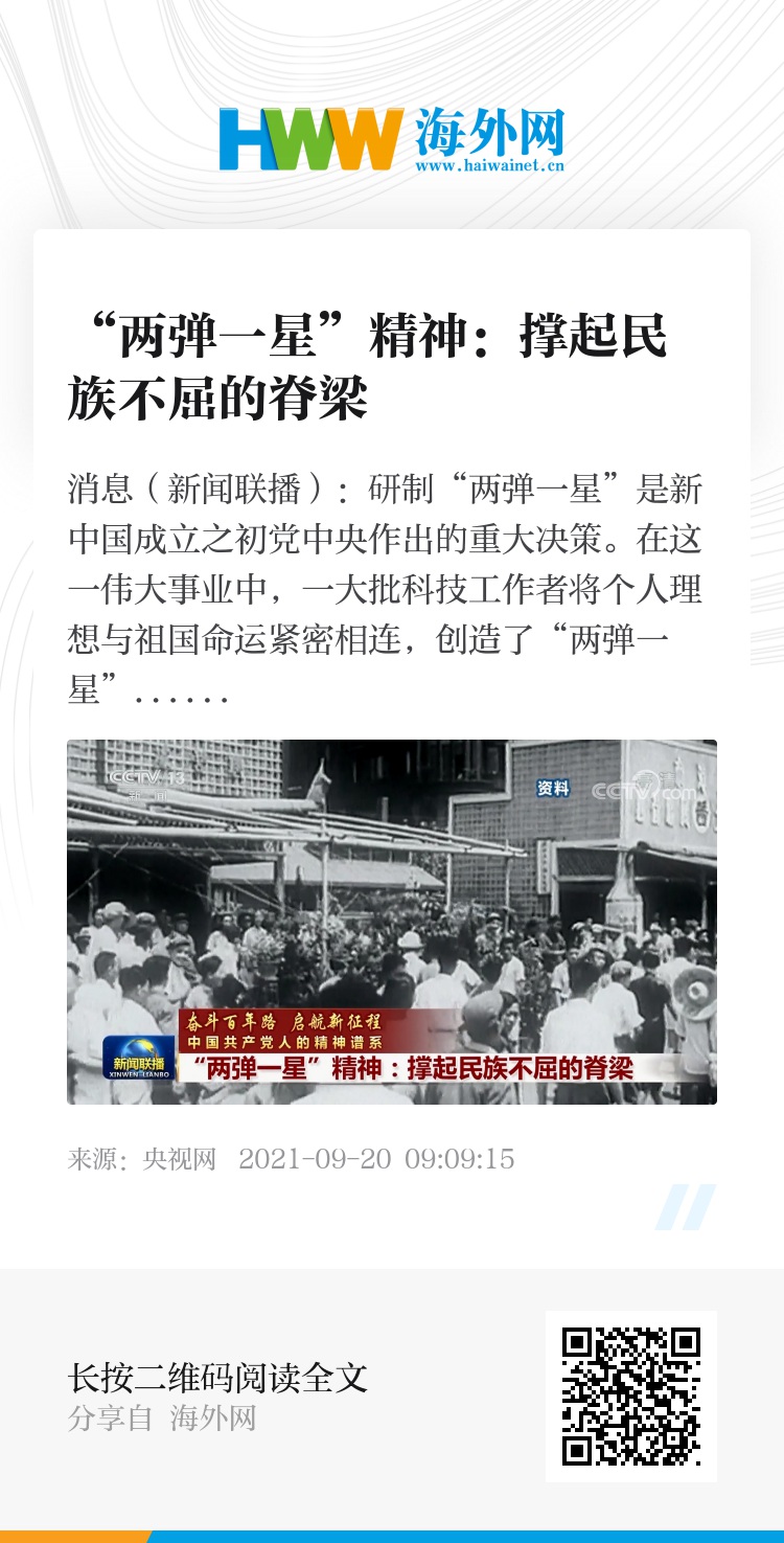 央视网消息(新闻联播):研制“两弹一星”是新中国成立之初党中央作出的重大决策。在这一伟大事业中,一大批科技工作者将个人理想与祖国命运紧密相连,创造了“两弹一星”奇迹,也孕育形成了热爱祖国、无私奉献,自力更生、艰苦奋斗,大力协同、勇于登攀的“两弹一星”精神。