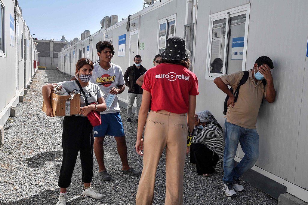 当地时间2021年9月20日,希腊萨摩斯,难民和移民们陆续前往新难民中心。图源:视觉中国