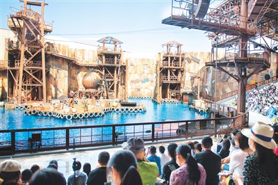 在未来水世界景区,游客能近在咫尺观看在好莱坞大片中出现的水上战斗场景。急速俯冲、摩托特技、震撼爆破、枪林弹雨……许多前所未见的水上战斗特效,引得现场尖叫声不断。