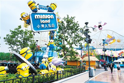 头戴小黄人发箍、手拿小黄人雪糕,在巨大的小黄人玩偶前面拍照留念,这是许多游客来到北京环球影城必拍的打卡照片之一。
