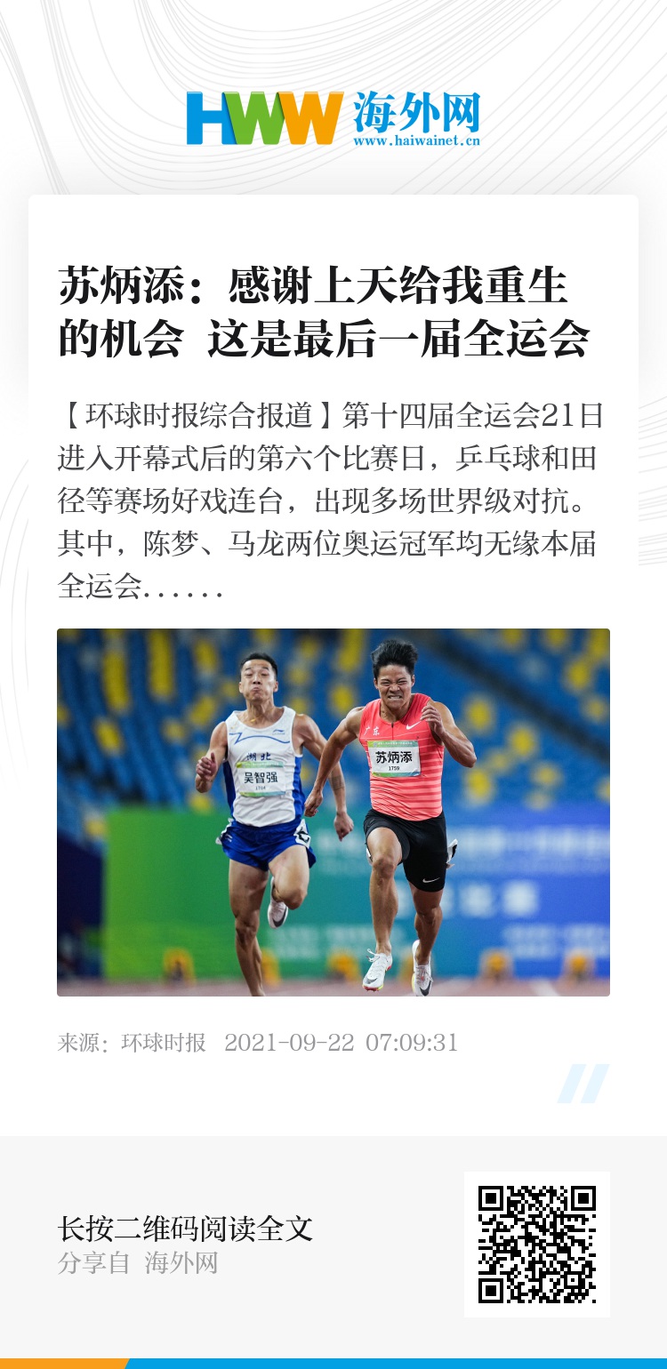 【环球时报综合报道】第十四届全运会21日进入开幕式后的第六个比赛日,乒乓球和田径等赛场好戏连台,出现多场世界级对抗。其中,陈梦、马龙两位奥运冠军均无缘本届全运会个人首金,而苏炳添、樊振东等名将延续了东京奥运的良好状态。